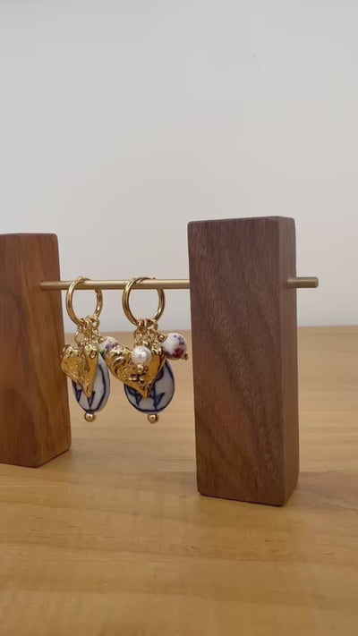 - Ceramic Flower Pearl Drop Pendant Earrings
