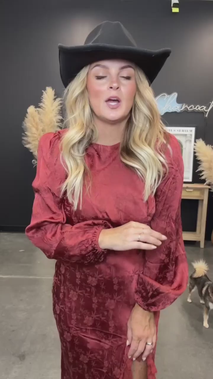 When you want a dress that speaks for itself, this one does it in the most elegant way. Designed in a luxe jacquard fabric, it features a chic boat neckline and balloon sleeves finished with soft elastic cuffs for a graceful drape. The tapered waist flows into a midi skirt detailed with scalloped lace and eyelash fringe trim—just the right mix of modern and romantic. A subtle slit above the knee adds movement, while the concealed back zipper keeps the finish seamless.