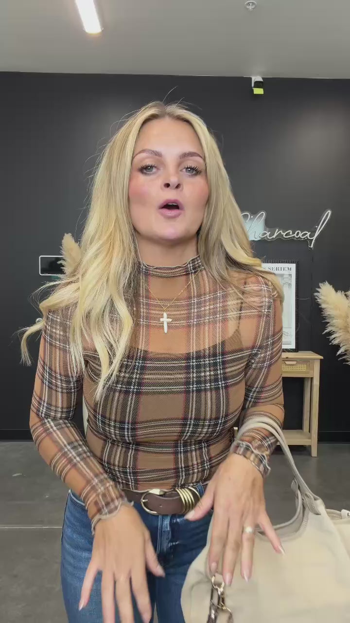 Think flirty transparency without trying too hard. Lightweight with a small stretch, it layers perfectly over every piece of clothing you own. The bold check gives it a vintage to now vibe that photographs amazing. Whether your styling it up or down this is the top you'll reach for when you want to look put together with almost no effort.
