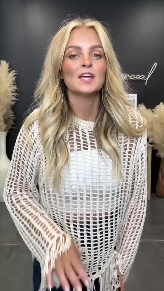 This net crochet knit sweater was made for crisp fall days and golden hour layering. With its open-weave design, it’s breezy yet cozy—the kind of piece you’ll throw on over tanks, dresses, or long sleeves as the weather shifts. The relaxed fit makes it easy to style, while the textured crochet knit brings that perfect mix of boho charm and fall coziness.