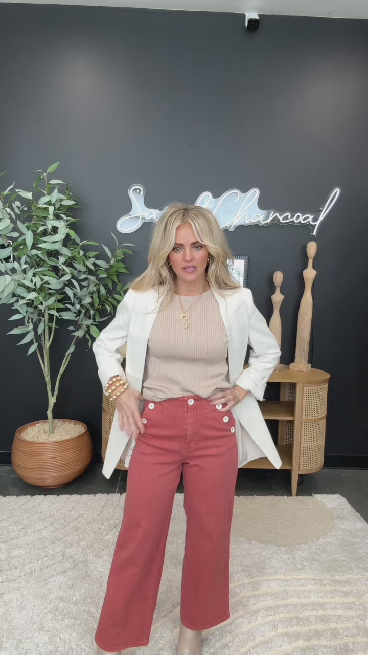 - Wide leg Washed Cotton pants with Button Detailing.