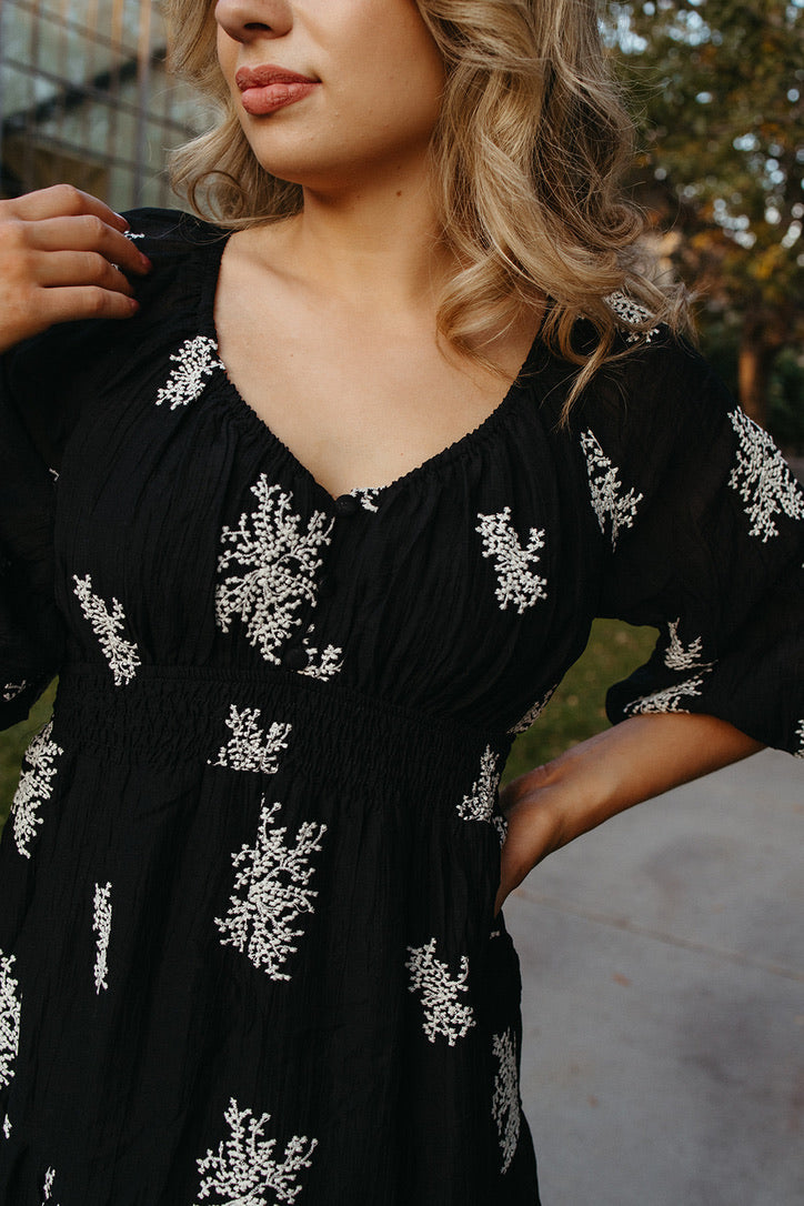 - All over embroidery tiered maxi dress featuring smocked waist and lace trim on sleeves and skirts for meticulous details.