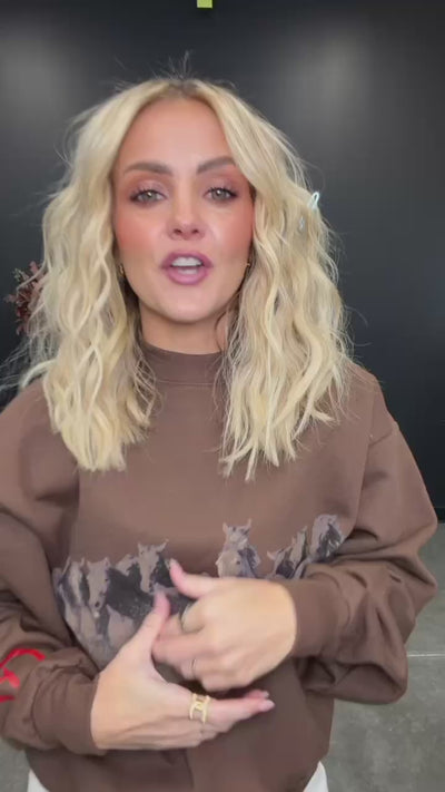 Say hello to your new go-to layer from Darlin’ — the Wild Horse Premium Crewneck. Made in the USA and crafted from a mid-weight cotton blend, this piece balances everyday comfort with standout style. Its wide, relaxed fit gives that perfectly boxy shape, while the front and back screen prints bring a bold, authentic feel. Vintage-inspired and built to last — it’s the crewneck you’ll reach for again and again. Pairs with the Darlin' Wild Horse Sweatpants.