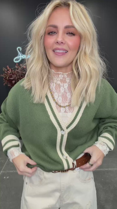 Dorm Room Days Cardigan — Cozy, preppy, and perfectly oversized.