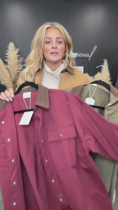 The Dusk Patrol Shacket is the oversized button-down that does it all — part shirt, part jacket, all cozy. Built from a soft woven fabric with a relaxed drop shoulder, long sleeves, and roomy front patch pockets, it has the kind of easy, lived-in energy you’ll throw on for everything from coffee runs to campsite hangs. Available in Burgundy, Camel, and Olive, it’s the neutral-forward layer that upgrades jeans, trousers, or matching sets.