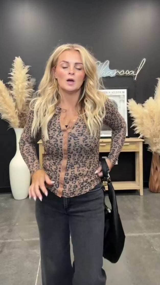 Features: Button-front closure, waffle knit fabrication, crew neckline, long fitted sleeves