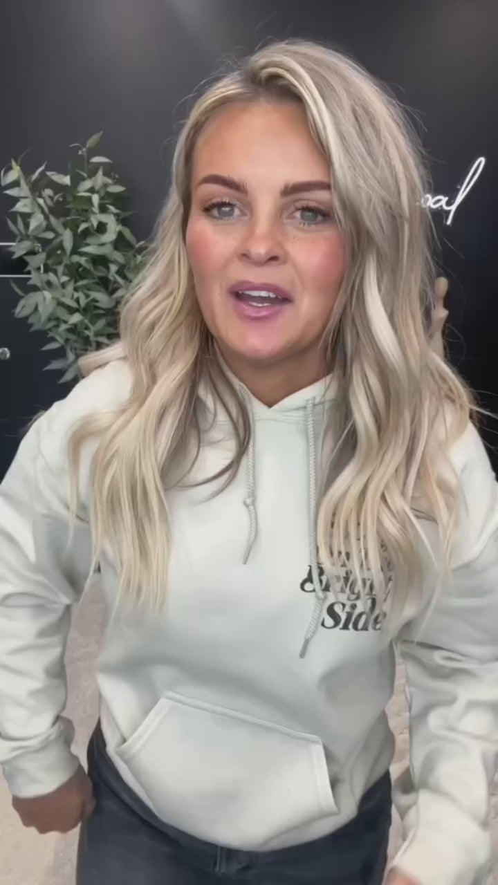 • Fleece hoodie with "Look on the Bright Side" screen printed front & back