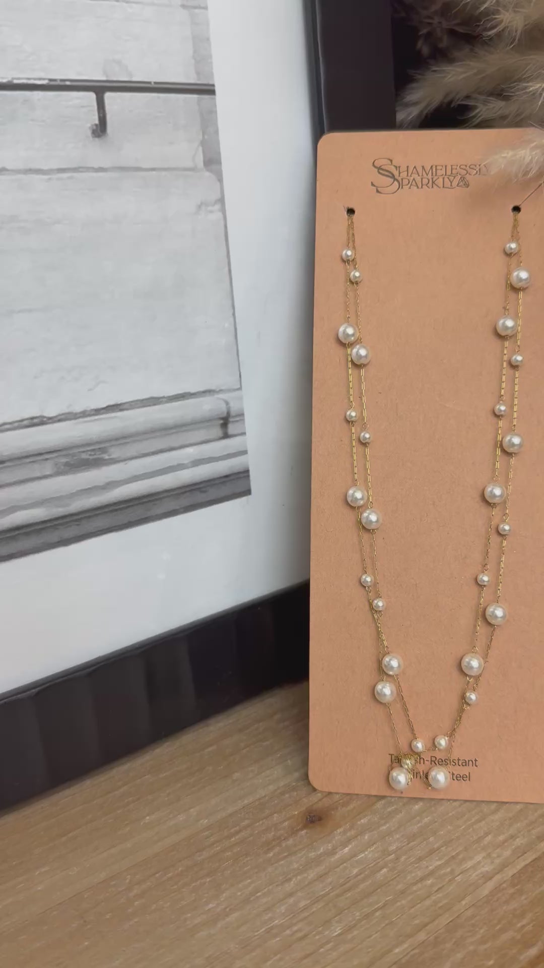 - 18k Gold plated stainless steel layered pearl chain necklace.