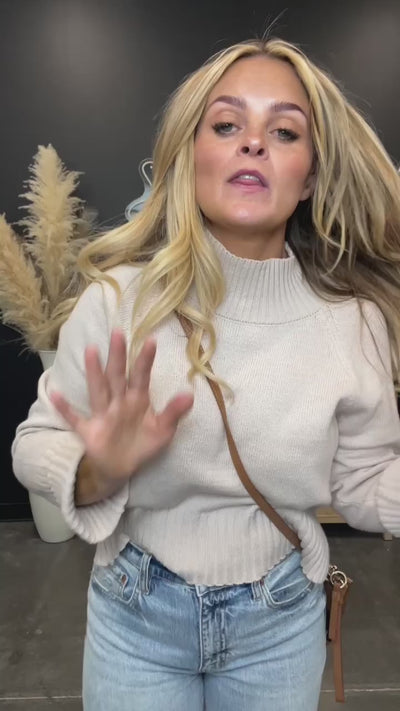 Want a sweater that goes with everything! With a modern mock neckline, boxy fit, and slightly cropped length, it’s the perfect balance of laid-back and styled. The seamless detail keeps it sleek, while ribbed trim and side slits at the hem add that little something extra. It’s one of those throw-on-and-go pieces that looks just as good with denim as it does with a skirt.