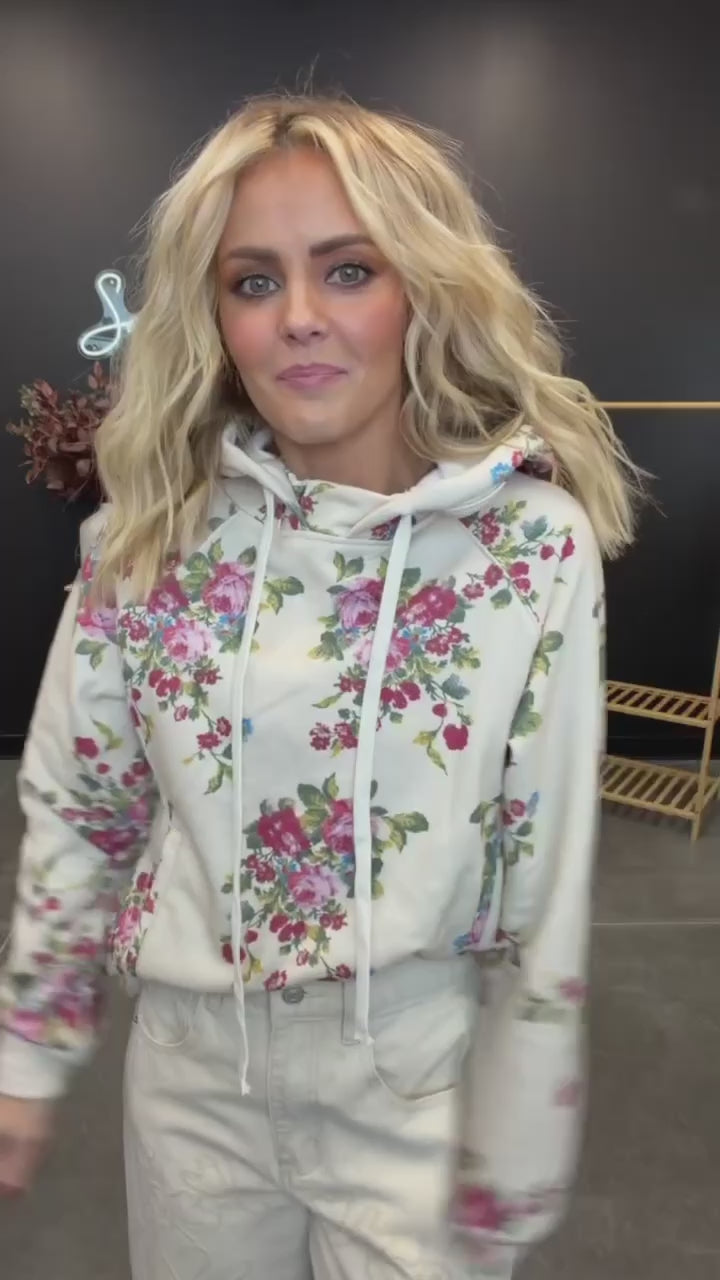 This floral hoodie blends an easy, lived-in feel with a pretty, vintage-inspired print that instantly elevates your casual look. Designed with a relaxed fit and classic hoodie details, it’s the kind of piece you’ll reach for when you want to feel cozy but still put together. The floral pattern adds just enough interest to stand out, while the neutral base keeps it endlessly wearable.