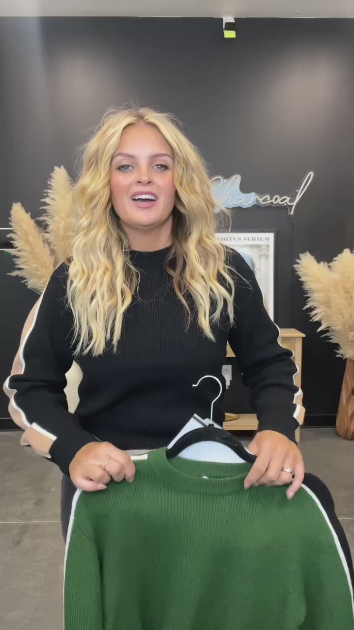 The Scout’s Honor Sweater is the kind of knit that quietly upgrades every outfit. It’s a soft, slightly structured viscose blend with a clean round neck and those sleeve details that give a subtle, sporty lift — without shouting “stripe.” The fit is comfy but not oversized, so it tucks, untucks, and layers easily over denim or under a shacket.