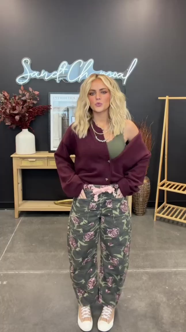 These printed barrel jeans bring an unexpected twist to a classic silhouette, blending utility-inspired structure with a soft, romantic feel. Crafted from 100% cotton denim, they hold their shape beautifully while still feeling wearable and lived-in. The belted waist adds interest (and adjustability), while the relaxed barrel leg creates that effortless, cool-girl shape we’re all reaching for right now.