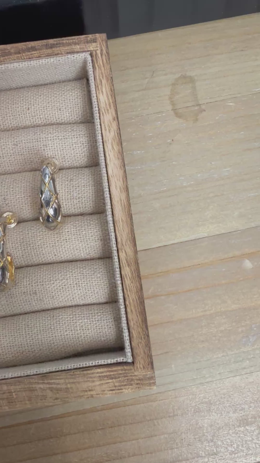 - Bring some sophistication to your style with these two tone pattern hoops.
