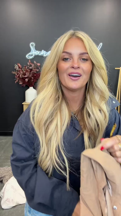 Designed with a relaxed, slightly oversized silhouette that’s perfect for layering. Stick with your true size for an effortless fit, or size down if you prefer something a bit more tailored.