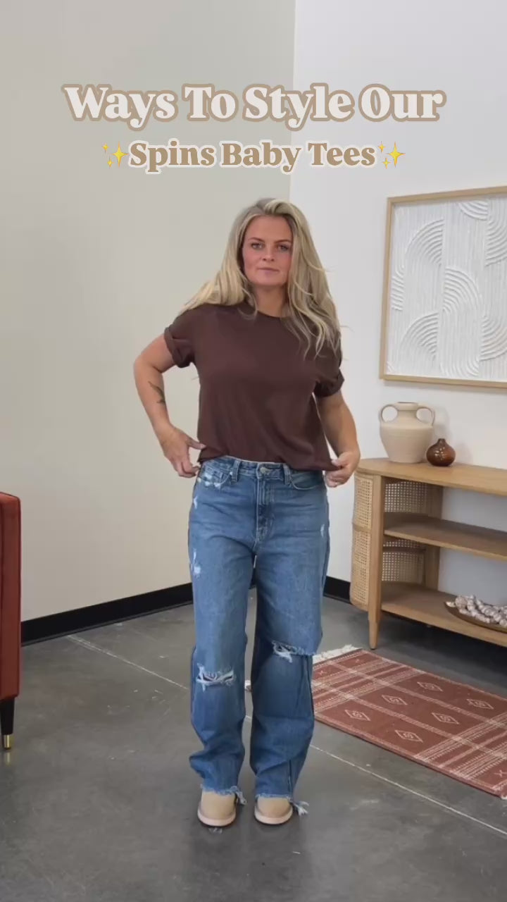 - Effortlessly blend style and comfort in our The Spins baby tee.
