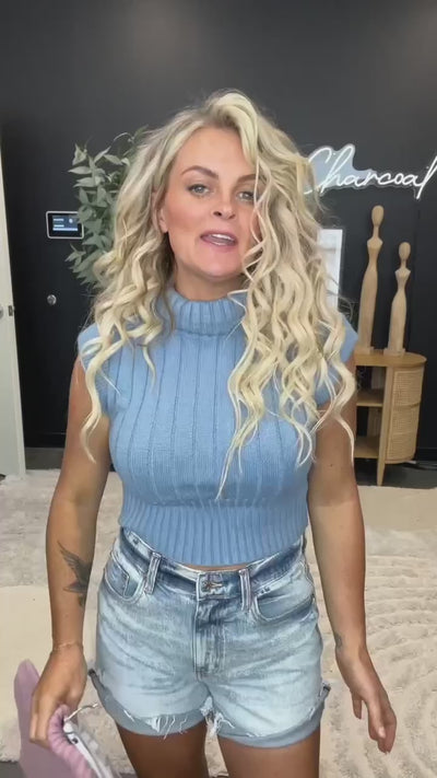 • Sleeveless Turtleneck Sweater with Ribbed Design