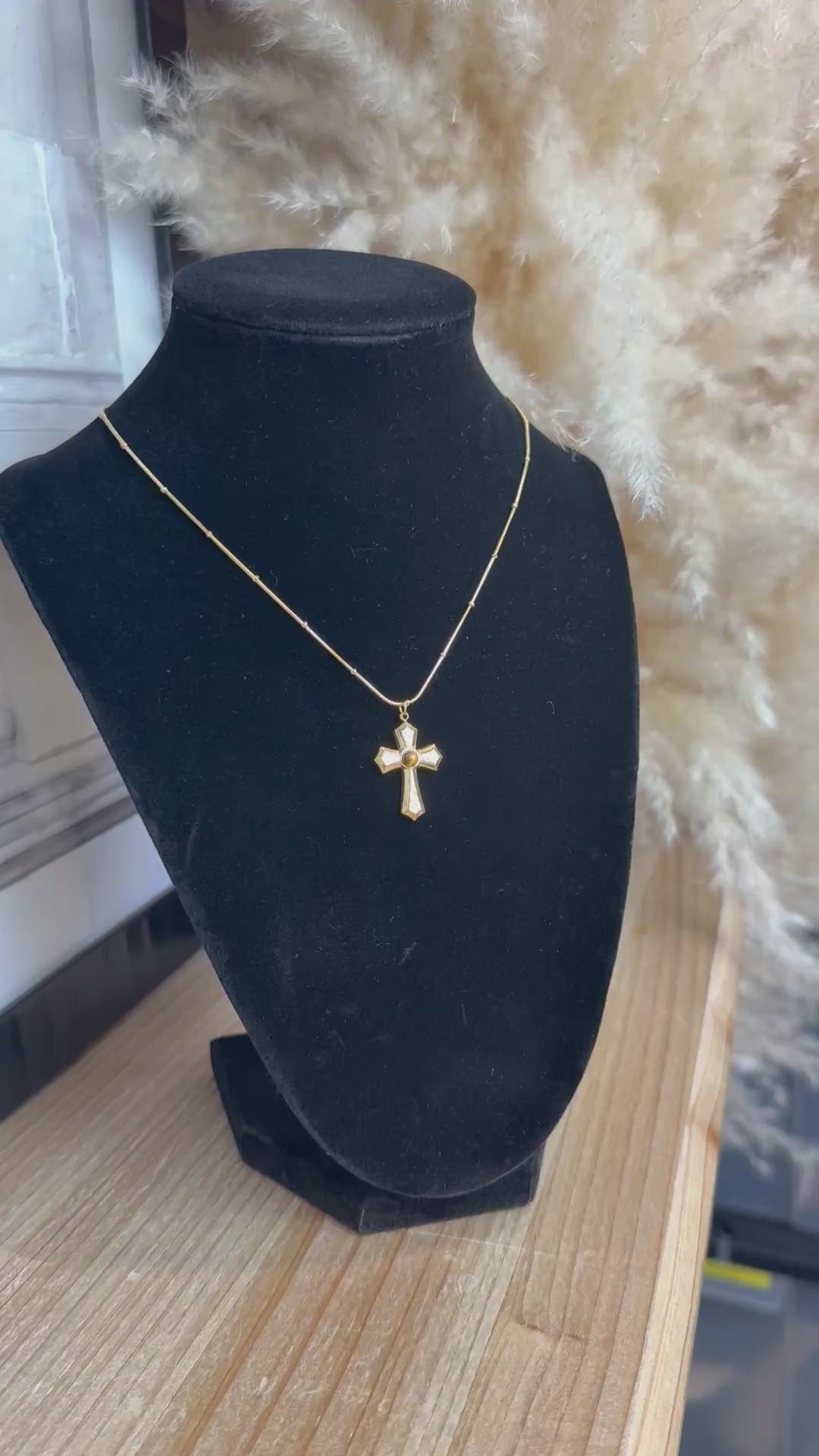 - 18k Gold plating cross pendant with cat's eye stone necklace.